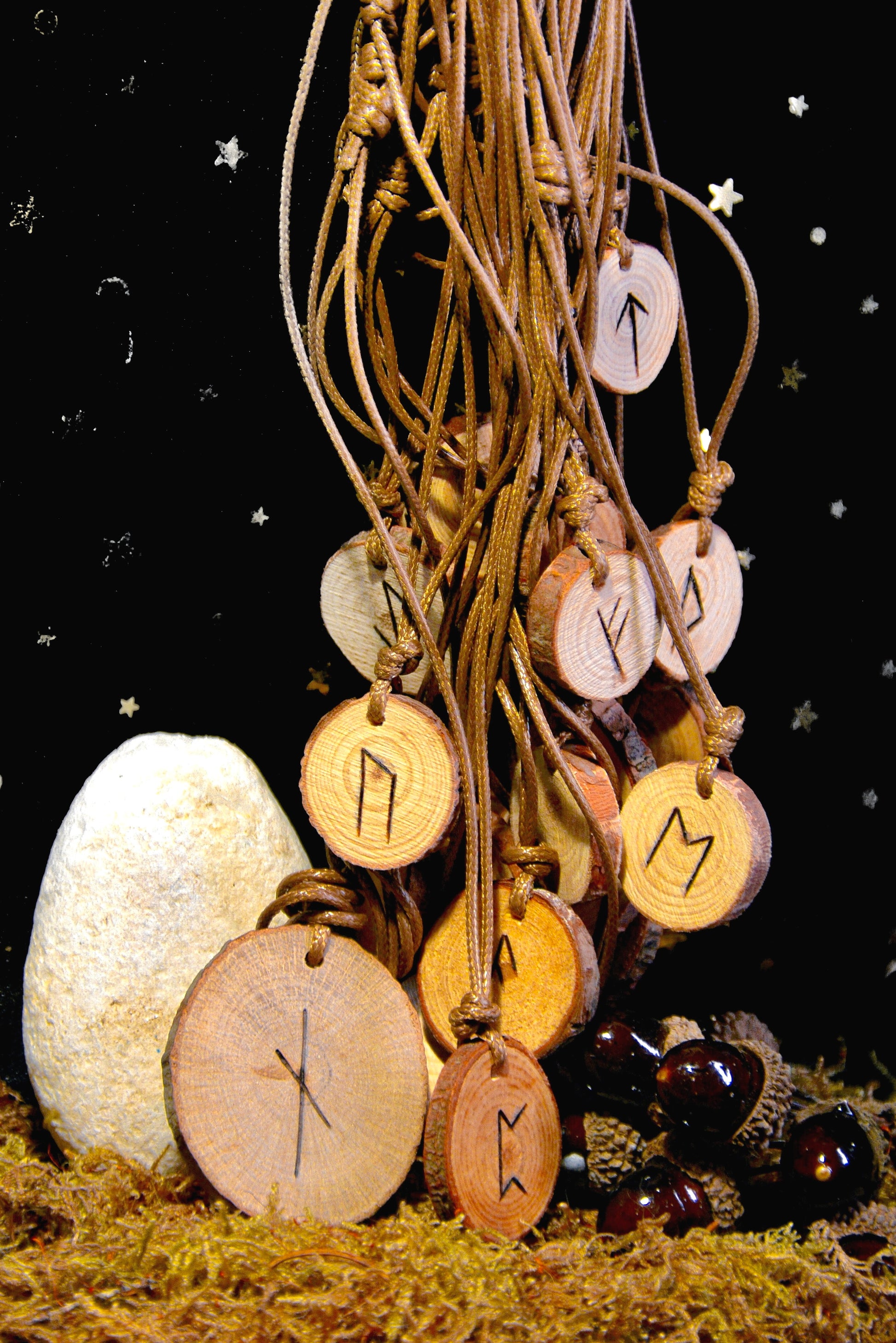 Runas pirograbadas artesanalmente en madera de pino respetando la naturaleza